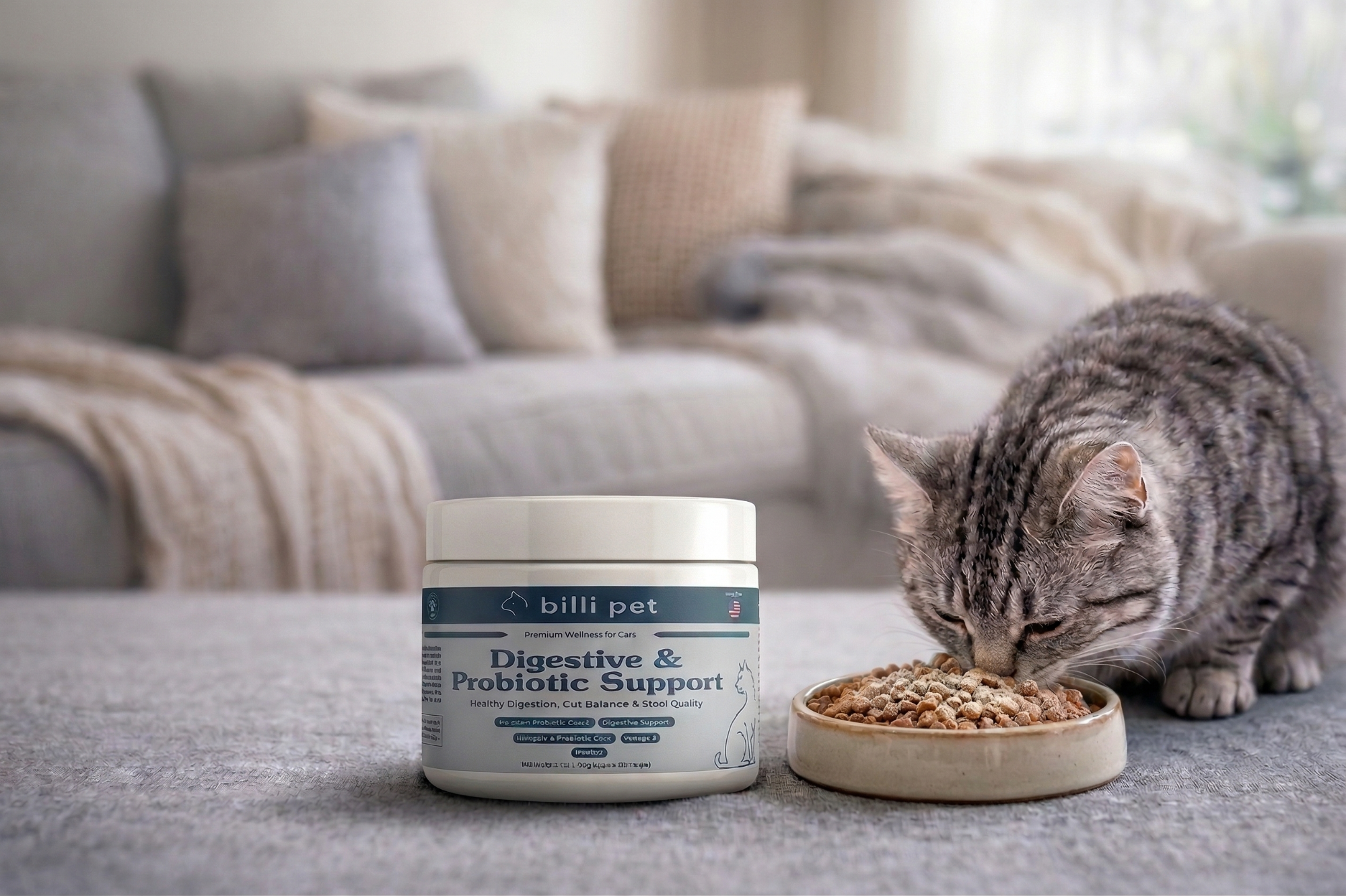 Billi Pet supplements are how you earn it — with feline-exclusive formulas, clean ingredients, and a 4-month supply in every jar.